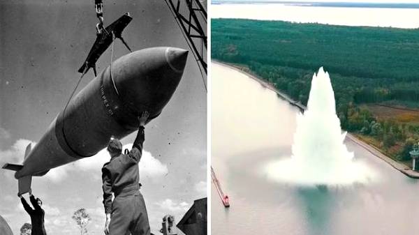 இரண்டாம் உலகப் போரின்போது பிரிட்டனால் நிறுத்தப்பட்ட 5.4 டன் வெடிகுண்டு, கடந்த ஆண்டு நடுநிலையாக்கும் முயற்சியின் போது வெடித்து சிதறியது. இந்த வெடிகுண்டு தண்ணீருக்குள் வெடித்துச் சிதறும் வீடியோ காட்சி சமூக வலைத்தளங்களில் வைரல் ஆகியது. அந்த வீடியோ இப்போது மீண்டும் சமூக வலைத்தளங்களில் வைரல் ஆகி வருகிறது. இரண்டாம் உலகப் போரில் இப்படி ஒரு சக்தி வாய்ந்த வெடிகுண்டு பயன்படுத்தப்பட்டுள்ளது என்பது நம்மை ஆச்சரியத்தில் ஆழ்த்துகிறது.