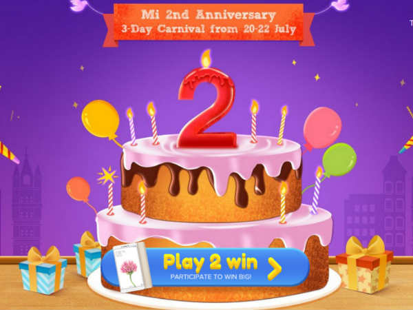 இரண்டாம் ஆண்டு நிறைவு போட்டிகளில் கலந்து கொள்பவர்களுக்கு எம்ஐ கேஷ் கூப்பன் மற்றும் இலவச எம்ஐ மேக்ஸ் வழங்கப்படும் என அறிவிக்கப்பட்டுள்ளது.