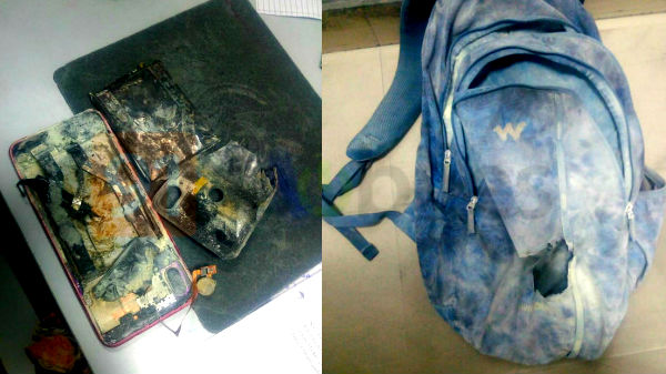 குர்கோன் பகுதியை சேர்ந்த விக்னேஷ் குமாரின் ரெட்மி நோட் 7 ப்ரோ யூனிட் தனது பாக்கெட்டில் இருந்த பொழுது இரண்டு தினங்களுக்கு முன்பு சூடேறியுள்ளது. சில நொடிகளில் சூடேறிய ஸ்மார்ட்போன் புகைக்கத் துவங்கியதும் அருகிலிருந்த அவரின் பை மீதி தூக்கி எறிந்திருக்கிறார். பையில் விழுந்த சில நொடிகளில் ஸ்மார்ட்போன் பேட்டரி வெடித்துத் தீப்பிடித்துவிட்டது. இதனால் அவரின் பையில் பெரிய அளவு ஓட்டை ஒன்றும் விழுந்துள்ளது.