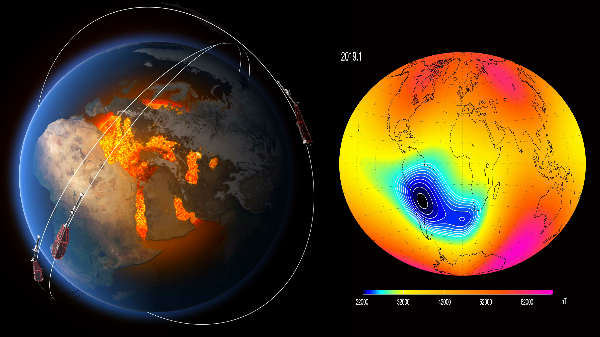 தெற்கு அட்லாண்டிக் உருவாகும் காந்தப்புலத்தின் ஒழுங்கின்மை கடந்த தசாப்தத்தில் தோன்றியது, ஆனால் கடந்த சில ஆண்டுகளில் தீவிரமாக இது வளர்ச்சியடைந்துள்ளது என்று புவியியலுக்கான ஜெர்மன் ஆராய்ச்சி மையத்தைச் சேர்ந்த டாக்டர் ஜூர்கன் மாட்ஸ்கா கூறினார். தெற்கு அட்லாண்டிக் ஒழுங்கின்மையின் வளர்ச்சியைக் கண்காணிக்க ஸ்வர்ம் செயற்கைக்கோள் அட்லாண்டிக் சுற்றுப்பாதையில் வைக்கப்பட்டுள்ளது என்று தெரிவித்தார்.
