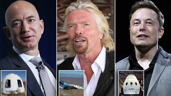 பில்லியனர்களான ஜெப் பீசோஸ், இலான் மஸ்க் மற்றும் ரிச்சர்ட் ப்ரான்சன் இடையான போர், அடுத்த ஆண்டு விண்வெளியில் யார் முதல் பயணியை அனுப்புவது என்பதில் வெடித்துள்ளது.