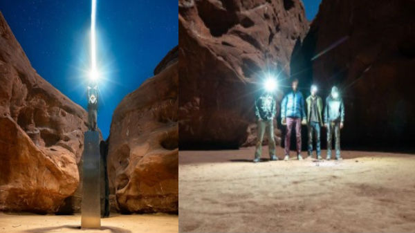 அமெரிக்கா உட்டா பாலைனத்தில் கண்டுபிடிக்கப்பட்ட மோனோலித்தை அதிகாரிகள் நேரில் ஆய்வு செய்தனர். 12 அடி உயரம் உள்ள இந்த தூணுக்கு பல வதந்திகள் பரப்பப்பட்டது. இதில் முக்கியமான ஒன்று இந்த மர்மத்தூணுக்கும் ஏலியன்ஸ்-க்கும் தொடர்பு படுத்தி பேசப்பட்டதாகும்.