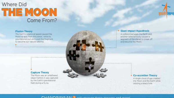 அது என்னவென்றால் சந்திரன் எங்கிருந்து வருகிறது, என்று இஸ்ரோ ஒரு படத்துடன் ட்வீட் செய்துள்ளது, சந்திரனின் தோற்றத்திற்குப் பின்னால் இருக்கும் நான்கு கோட்பாடுகளை விளக்கி உள்ளது என்பது குறிப்பிடத்தக்கது.