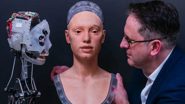 ரோபோக்கள் படைப்பாக்கம் மிக்கதாக இருக்க முடியுமா? பிரிட்டிஷ் கேலரி உரிமையாளர் ஐடான் மெல்லர், தான் தயாரித்துள்ள அய்-டா மூலம் இந்த கேள்விக்கான பதிலை அளிக்க முயல்கிறார்.