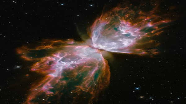 விண்வெளியில் உள்ள வாயுகள் மற்றும் கோள்களின் நட்சத்திரங்கள் உள்ளிட்டவைகளால் ஏற்படும் ஒளியால் வண்ண மிகு குடை கம்பியின் தோற்றம் போல் உருவாகியுள்ளது.