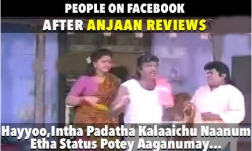 படம் வெளியாவதற்கு முன்பே நம்மவர்கள் அப்படத்தின் நடிகர்கள், கதை உள்ளிட்ட விஷயங்களை படக்குழுவே வியக்கும் அளவு தகவல்களை வெளியிடுவர். அதோடு இல்லாமல் படம் வெளியான அன்றே தியேட்டரில் படம் பார்க்கும் போதே அப்படத்தை பற்றி சமூக வலைதலங்களில் எழுத ஆரம்பித்து விடுவர், இன்னும் சிலர் படம் முடிந்து திரும்பியவுடன் பார்த்த படத்தை பற்றி மெமீஸ்களையும் பரப்பிவிடுவர்.இங்கு நாம் பார்க்க இருப்பதும் சமீபத்தில் பலத்த எதிர்பார்ப்புகளுடன் வெளியான அஞ்சான் படத்தின் மெமீஸ்களை தான், பார்ப்போமா