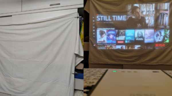அதாவது rollable motorised projector screen வாங்க வேண்டும் என தன் மனைவியிடம் ரஞ்சித் கூறியதும், அதை வாங்குவதற்குப் பதிலாக ஏற்கனவே இருந்த பழைய ப்ரொஜெக்டர் உடன் ஒரு வெள்ளை பெட்ஷீட்டை ஸ்கிரீன் ஆக அறையின் அலமாரியில் அழகாக இழுத்து மாட்டியிருக்கிறார் ரஞ்சித்தின் மனைவி. குறிப்பாக இது பழைய காலங்களில் இருப்பது போன்று ஒரு அட்வென்ச்சர் அனுபவத்தைத் தருகிறது என்றே கூறலாம்.