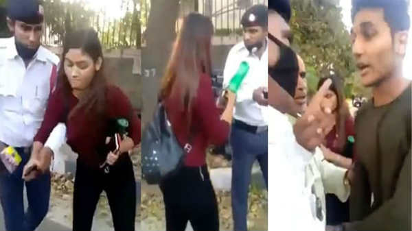 டெல்லியில் உள்ள கிஷன்கர் பகுதியில் வாகன சட்டத்தை மீறிய குற்றத்திற்காக ஒரு ஆன் மற்றும் பெண்ணை காவல்துறையினர் வழிமறித்து நிறுத்தி விசாரித்துள்ளனர்.