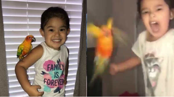 குறிப்பாக அந்த வீடியோவில் சிறுமி கத்தியவுடன் கிளி ஒன்று வேகமாக பறந்து வந்து அவரை தாக்குகிறது.